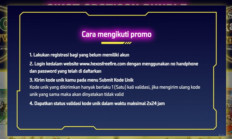 Masuk ke website www.hexosfreefire.com, lalu masukkan kode redeem yang kalian dapatkan dari kemasan HEXOS tadi.